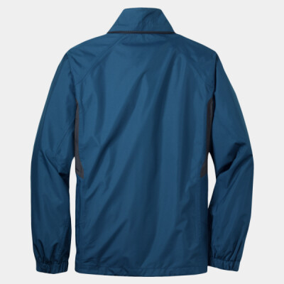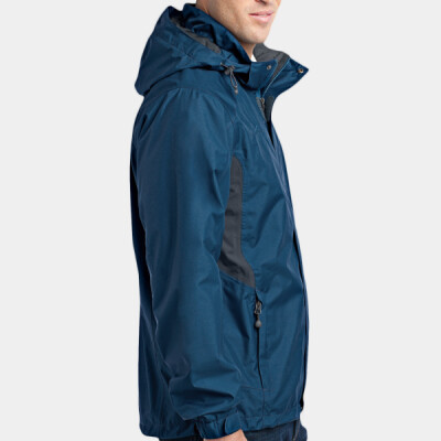 From misty mornings to evening downpours, this fully seam sealed, colorblock jacket will help keep you dry and protected from whatever Mother Nature throws at you. 5000MM fabric waterproof rating, 5000G/M2 fabric breathability rating, detachable hood with drawcord and toggles for adjustability, storm flap with hook and loop closures, zippered chest pocket, front zippered pockets, adjustable tab cuffs with hook and loop closures and an open hem with drawcord and toggles. Contrast Eddie Bauer logo on right chest. WeatherEdge® logo on left sleeve. 100% polyester dobby shell, mesh body lining, 100% nylon accents.