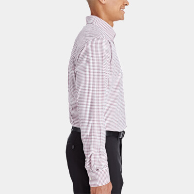 3 oz/yd2 / 100 gsm, 92% nylon, 8% spandex; Yarn dye woven with moisture wicking performance; Adjustable cuffs with button placket; Double layer, bias cut back yoke; Dyed-to-match pearlized buttons; Hidden button-down collar; Luxury, comfort and performance in one;