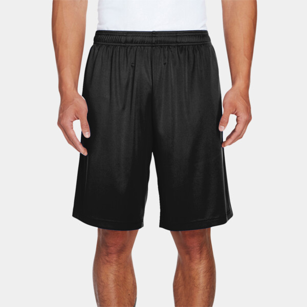 3.5 oz./yd2 / 130 gsm 100% polyester interlock; Moisture-wicking and UV 40+ protection; Side pockets; Team fit; Cationic dyes to ensure superior brightness and excellent color fastness; Elasticized waistband with flat internal drawcord; 9" inseam; Transitioning from heat-seal label to tear away label. Inventory may be mixed;