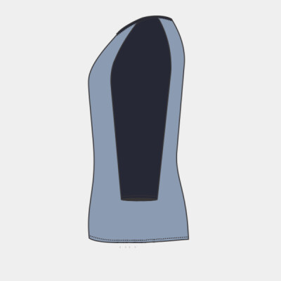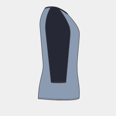- Contrast color three-quarter sleeves and three-eighths inch neck binding