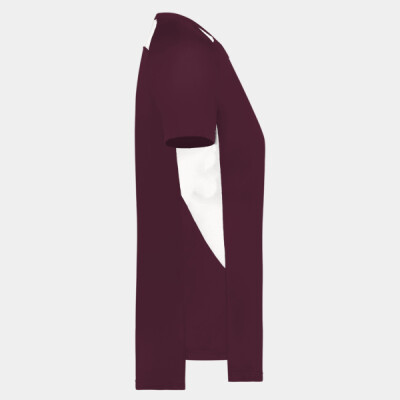 * 100% polyester wicking knit with color secure(r) technology that helps prevent dye migration * 90% polyester/10% spandex wicking mesh inserts with color secure(r) technology that helps prevent dye migration * Wicks moisture * Ladies' fit * Tag-free label * Low profile tapered collar * Raglan sleeves * Modified dropped back hem