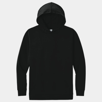 Balancing polyester performance with cotton comfort, this long sleeve hooded tee constructed from recycled materials has a rich, soft feel.